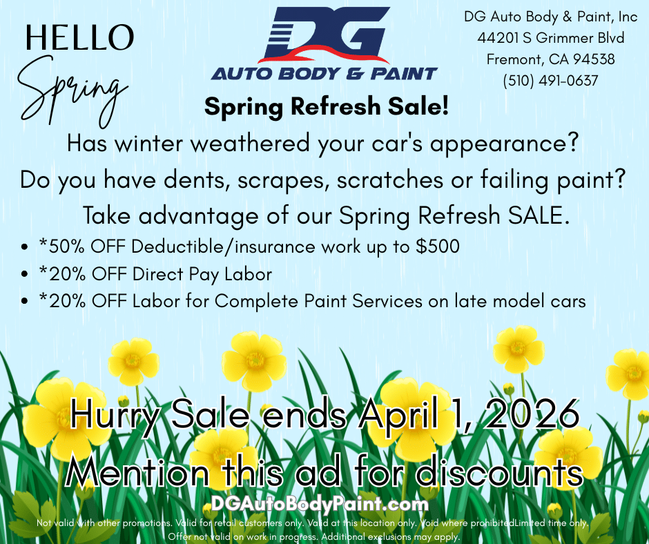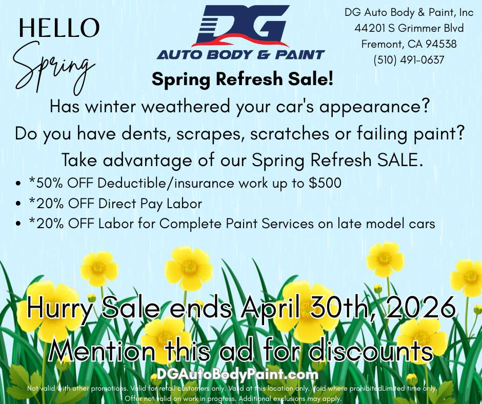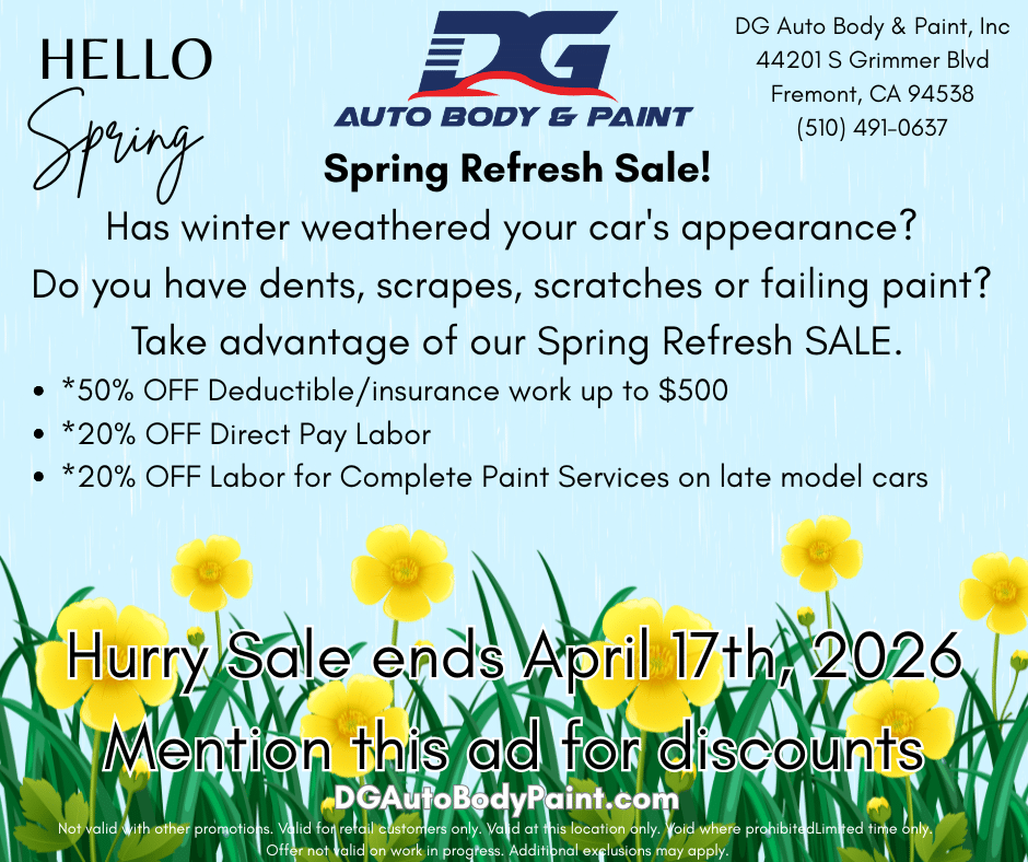 DG Auto Body & Paint is a full service collision facility. Auto Body Repair on all makes and models, frame and uniÂbody repair and replacement, replaceÂment of susÂpenÂsion components, glass replacement, refinÂish dupliÂcaÂtion of OEM finishes, and more.